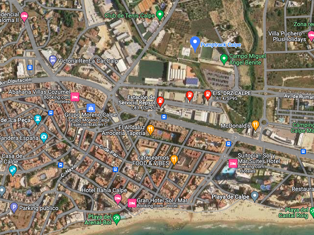El circuito esta en un recinto cerrado en un polideportivo, tiene horario de apertura. De 9.00 de la mañana a 22:00 de la noche. Es un recinto que cuenta con iluminacion. Tenemos punto de agua, baños en la zona del campo de futbol y mas instalaciones para practicar otros deportes como skatepark, bowl, patinaje, parkour, basquet, futbol...El tema de aparcar es muy facil tenemos mucha zona habilitada para poder hacerlo. Dentro tenemos algunas zonas de sombra y bancos para sentarnos. Alrededor y muy cerca encotramos cafeterias, gasolineras, supermercados y mas servicios. La playa tambien se encuentra muy cerca de la instalacion. El pueblo nos ofrece multitud de actividades para hacer un turismo activo como rutas de bici de montaña, senderismo, escalada...Calpe te propone diferentes entornos naturales para pasear, descansar o disfrutar observando su flora y su fauna. El fascinante contraste entre mar y montaña alcanza su máxima expresión en el Peñón de Ifach: una montaña colosal, literalmente dentro del mar. Ifach, declarado Parque Natural, hace de Calpe un lugar de extraordinario atractivo paisajístico. Tambien tiene muchas opciones para un turismo mas cultural y gastronomico. La gastronomía típica de Calpe se basa principalmente en los sabrosos pescados de su bahía (rape, caballa, pulpo, sardina, etc. ). La llauna de Calp y el arròs del senyoret, son los platos típicos seguidos de otros tantos como putxeros de polp, paella, arròs amb fessols i naps, arròs amb bledes o arròs al forn que encontrarás en las cartas de muchos restaurantes. No te olvides de probar las tradicionales cocas, dulces y saladas, que los hornos elaboran a diario, así como los sabrosos dulces artesanales. Calpe es multicultural y prueba de ello son la variedad de restaurantes con platos internacionales que te acercarán a conocer, entre otras, la cocina alemana, americana, austríaca, belga, oriental, griega, hindú, inglesa, italiana o suiza. En Calpe puedes observar la huella del paso de diferentes civilizaciones mientras recorres sus típicas calles marineras. Contempla los hallazgos de la Edad del Bronce y época ibérica en el Museo de Historia de Calp y conoce mejor la civilización romana en el yacimiento de los Baños de la Reina, uno de los conjuntos arqueológicos en su categoría más importantes de toda la Hispania Romana. La Pobla medieval de Ifach, debido a su importancia y riqueza, tiene también una representación especial dentro del museo. En el casco antiguo, puedes contemplar restos de la muralla que protegió a Calpe de los ataques musulmanes y el Torreó de la Peça que en su día contuvo una pieza de artillería, y que en la actualidad alberga el Museo del Coleccionismo. No olvides visitar la Iglesia Antigua, de estilo ojival y mudéjar, levantada en el S. XV. sobre una antigua capilla de la conquista cristiana. El Forat de la Mar, brecha abierta en la muralla cuando cesó la amenaza pirata, el arrabal, la Ermita de San Salvador, y la vista panorámica del conjunto arquitectónico del arquitecto Ricardo Bofill de finales del S.XX son otros enclaves que no puedes perderte. El antiguo Ayuntamiento, convertido hoy en Sala de Exposiciones, se erige junto al solar ocupado por el histórico portal, antiguo acceso al reciento amurallado, conocido popularmente como El Portalet.