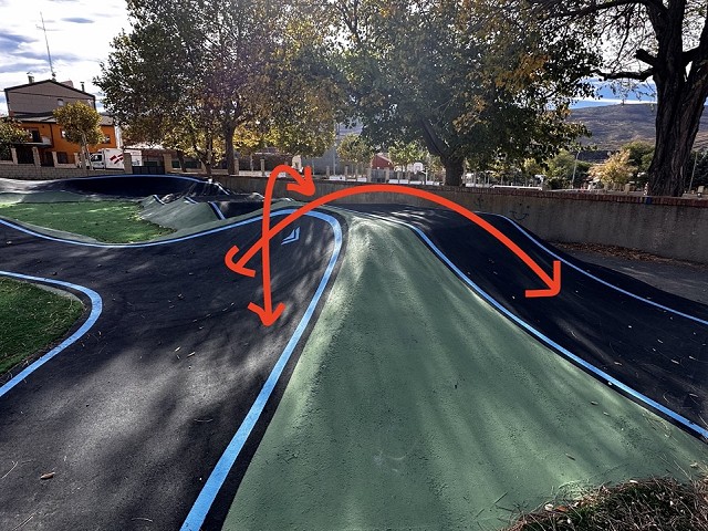 Se encuentra en un recinto con puerta de entrada, al lado de un colegio pero no hemos visto ningún cartel con horarios. La encontramos abierta ya desde bien temprano por la mañana. Es un circuito muy divertido con muchos módulos que puedes enlazar. Tiene una meseta en la primera recta que encontramos muy divertida y segura y que ofrece hacer algún cambio de sentido hacia el carril contrario. Los módulos que podemos enlazar tienen un tamaño muy bueno para practicar si quires mejorar tu técnica. Es un circuito que tiene una vuelta de unos 180 metros y en el retorno tienes como dos alternativas. Tiene un rodar muy fino y los peraltes van muy bien, lo disfrutamos mucho. La zona de salida es bastante ancha y permite bastante gente en cola sin molestarse. Los peraltes son a izquierda a excepción de uno que encintramos en la segunda opción del retorno.