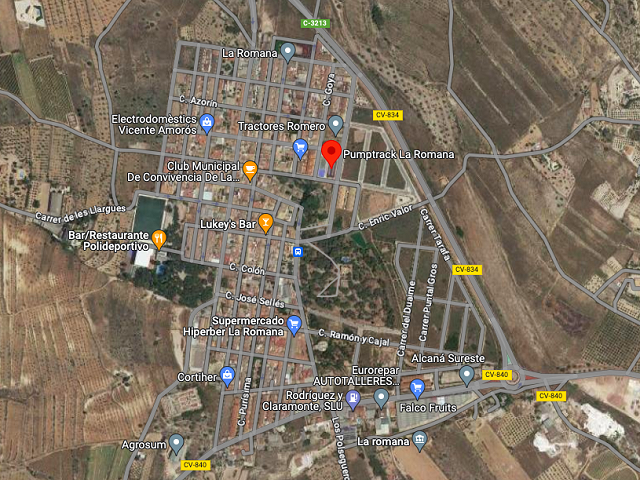 El circuito no tiene baños ni punto de agua. El pueblo no es muy grande, pero tenemos un par de supermercados y algunas cafeterias y restaurantes. Tambien cuenta con algunas gasolineras. La Romana nos ofrece un turismo rural, cultural y activo. Empezamos con el Pino de la Vaca, un gigantesco pino que se encuentra situado en el parque del mismo nombre y el de la Noria, que está en las afueras del pueblo, y que acoge una antigua noria utilizada antaño para extraer el agua. Para conocer algunas interesantes muestras de la historia del pueblo, el Lavadero, de principios del siglo XIX, o el antiguo Matadero. Y de lo más fotogénico es el Calvario, ubicado sobre un antiguo cementerio. Se halla en la Plaza de Gómez Navarro, junto al Ayuntamiento, y en él llaman la atención los cuatro pilares que, junto a otros diez que los rodean, incluyen unos azulejos que representan las catorce estaciones del Vía Crucis. Si te gusta relajarte, puedes hacerlo por los parajes naturales que rodean el pueblo, como el de la Peña de la Mina, que está a ocho kilómetros de La Romana, en la sierra de Algayat; el Puntal Gros, que se halla en la cima de la sierra de la Solana de Algayat, a nueve kilómetros; la sierra de la Cruz, donde se acude en romería en el mes de mayo; la Fuente del Cucarró, el Puntal de Cuartés, la Sierra del Reclot o la Cueva de Pepín. La Romana cuenta con un animado calendario de eventos, siendo las Fiestas Patronales, en honor de los Sagrados Corazones de Jesús y de María, las más señaladas. Comenzaron a celebrarse a principios del siglo XX, y tienen lugar en la tercera semana de agosto. Son muchas las actividades que se realizan en estos días, como verbenas populares, concursos, pasacalles, procesiones religiosas, mascletàs o fuegos artificiales, y desde el año 1975 también incluyen comparsas de Moros y Cristianos. Si eres de los que te gusta realizar una buena ruta de senderismo en cada lugar que visitas, en La Romana te proponemos la ruta que recorre la Peña de la Mina y la sierra de la Solana de Algayat. Parte del casco urbano, y tiene un recorrido de 13 kilómetros. Se tarda en realizarla poco mas de cuatro de horas, y cuenta con un grado de dificultad medio-alto.