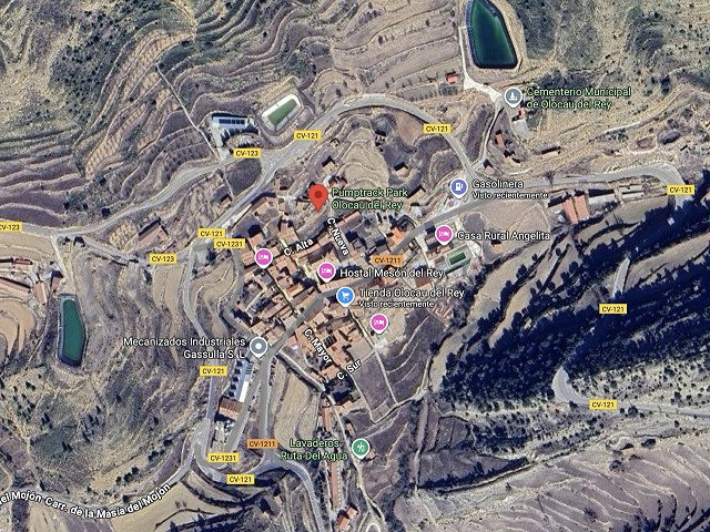 Es un pequeño pueblo de montaña pero cuenta con servicios como un pequeño supermercado, gasolinera y cafeteria. El circuito no esta vayado por lo que podemos acceder sin complicacion. En un futuro nos comentan que la idea es terminar de asfaltar interior y exterior. El entorno del circuito es muy bonito. Olocau no ofrece lugares de interes cultural como pasear por sus calles, con sus casas tradicionales cargadas de piedra, un material muy presente en gran parte de su rico patrimonio cultural. Ejemplos de ello son el Ayuntamiento, construido en el siglo XVI en piedra de sillería, o la Iglesia Parroquial de Santa María del Pópulo, construida en el siglo XII también a base de piedra. Aunque su portada es de origen románico, si nos adentramos en ella, observaremos el estilo gótico en sus rincones. Esta iglesia es conocida por conservar una talla de la Virgen de la Naranja que merece la pena visitar. En este paseo por la historia de Olocau del Rey, no nos podemos olvidar del Castillo de Olcaf, que nos vigila desde un cerro a casi 1200 metros de altura. Declarado Bien de Interés Cultural, hoy día podemos visitar sus ruinas e imaginar el lugar estratégico que llegó a ser en el pasado. Asimismo, para hacernos una idea de cómo vivían los habitantes de este pueblo visitar el horno gótico, el más antiguo de la Comunitat Valenciana, una fuente de piedra del siglo XV y un lavadero donde se reunían las mujeres. Como turismo activo, nos ofrece una multitud de rutas de montaña para senderismo o bicicleta de montaña como visitar los barrancos de la Tejería, de las Umbrías, de los Chorros (en su límite con Tronchón), de la Rambleta, de la Rambla y el río Cantavieja, que corre por su límite meridional uniéndosele allí mismo su afluente el Tornos.