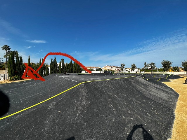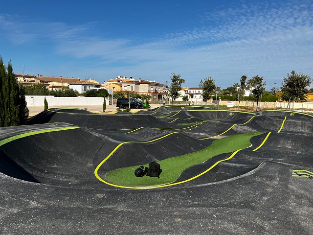 Es un circuito abierto, no se encuentra en ningún recinto cerrado, es un parque público que no está vallado, por lo que no tendremos que preocuparnos por los horarios de apertura. Tiene unos 140 metros por vuelta, personalmente lo recomendaría para todo uso, algunos son más duros para uso tipo Skate o patinete pero este lo veo muy polivalente. Es un circuito, que bajo mi punto de vista, conseguir hacer los saltos o enlazar transiciones exige un cierto nivel técnico, ya no tanto por el tamaño, si no porque muchos de ellos, los encontramos saliendo de curva y tienes que venir con mucho ritmo. La meseta que encontramos en la recta de salida, por tamaño, exige también venir con ritmo si se quiere pasar saltando. Una cosa que me gusta es la cantidad de peraltes que tiene, que permiten entrar a gran velocidad. Se rueda rápido, la superficie tiene un rodar muy fino y todo tiene una armonía. Otro dato importante es, que así como encontramos circuitos que se pueden rodar en ambas direcciones, este no lo recomendamos, no esta diseñado y no funciona nada bien.