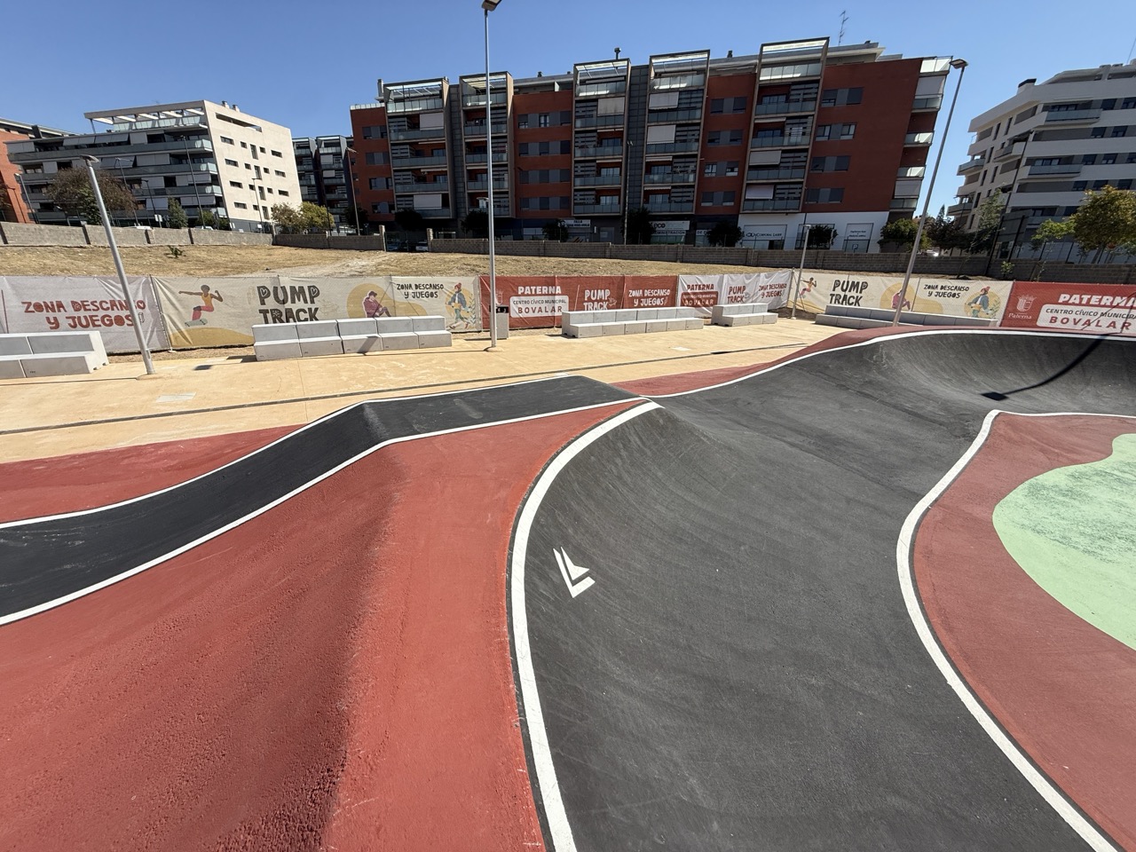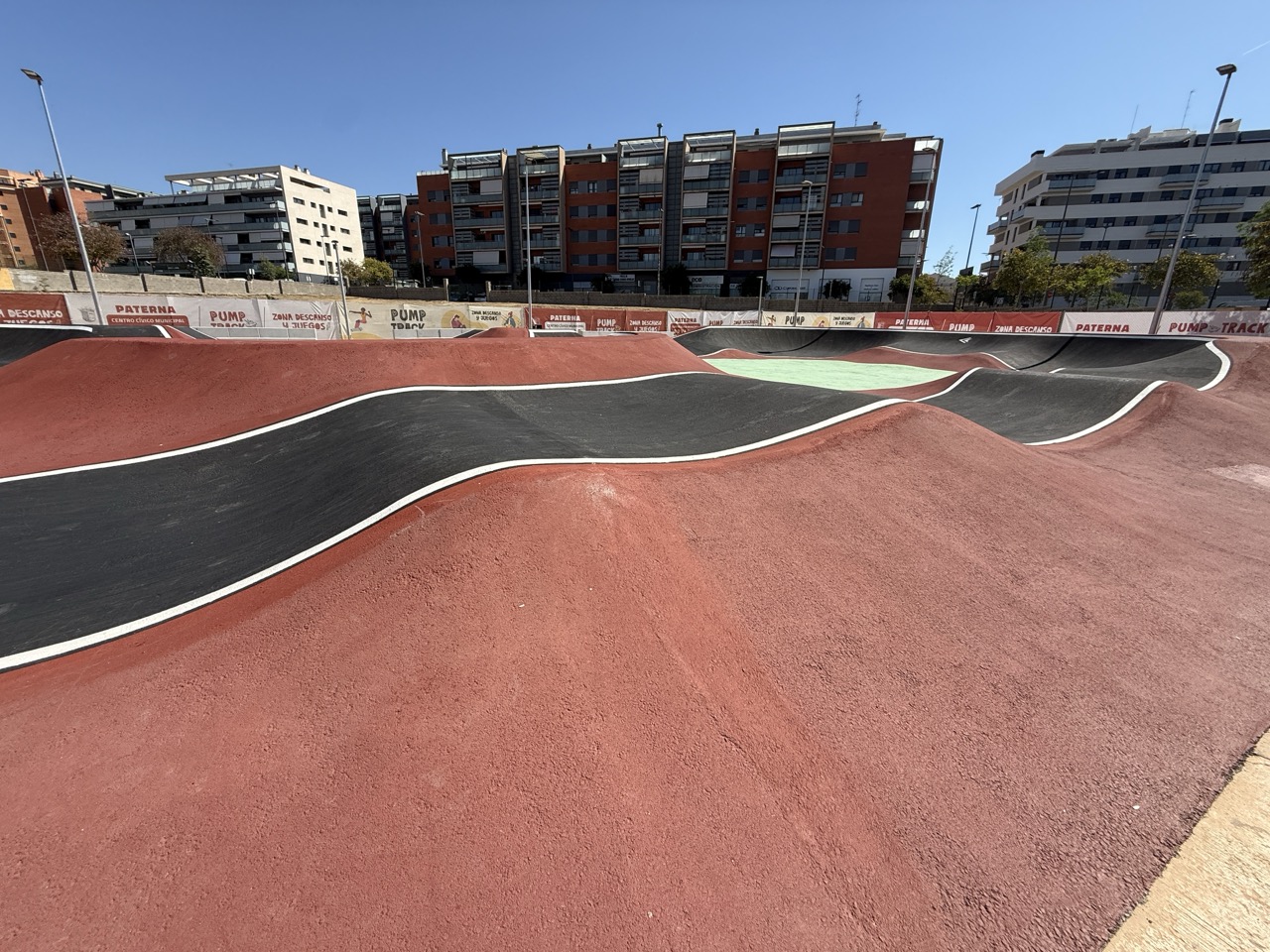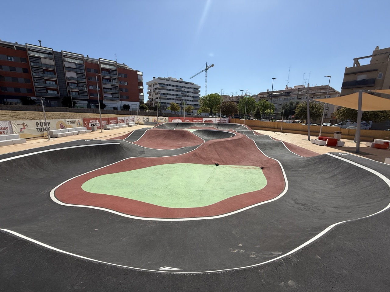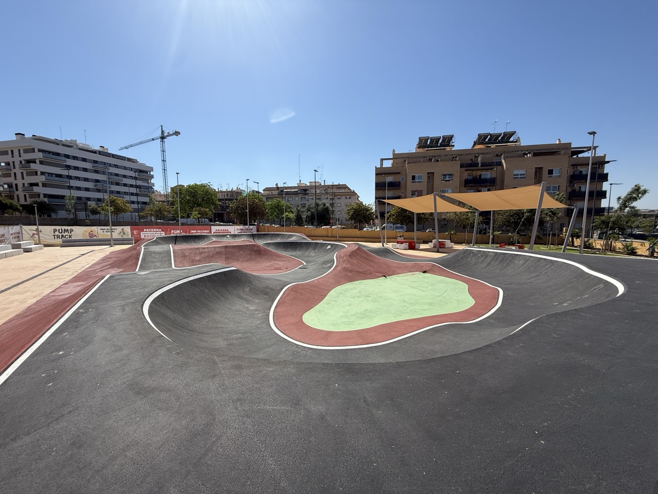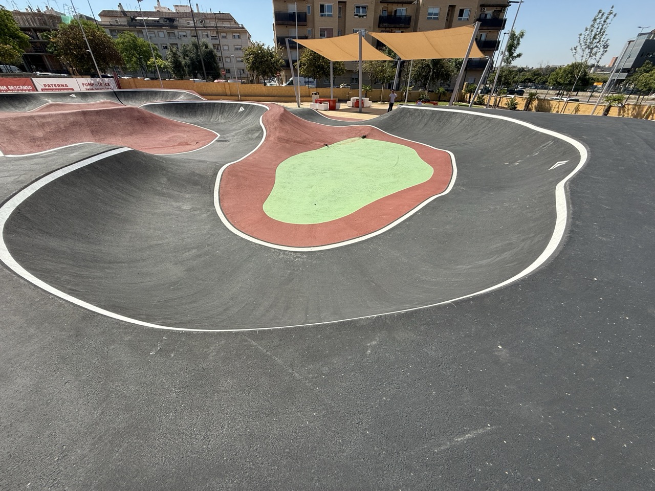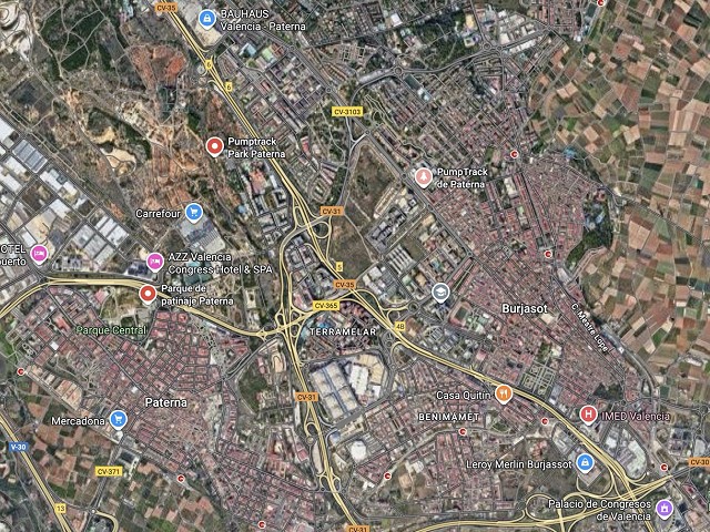 Paterna nos ofrece todos los serivcios necesarios. En la zona podemos encontrar supermercados, cafeterias, restaurantes, etc. Justo al lado tenemos un mercadona, donde podremos ir al baño y comprar alguna cosa que podamos necesitar. Incluso el parking es de acceso libre. Igualmete no suele ser complicado aparcar alrededor del circuito. El recinto del parque, cuenta con unas mesas y una zona con unas lonas para proteger del sol. Tambien tiene un punto de agua.