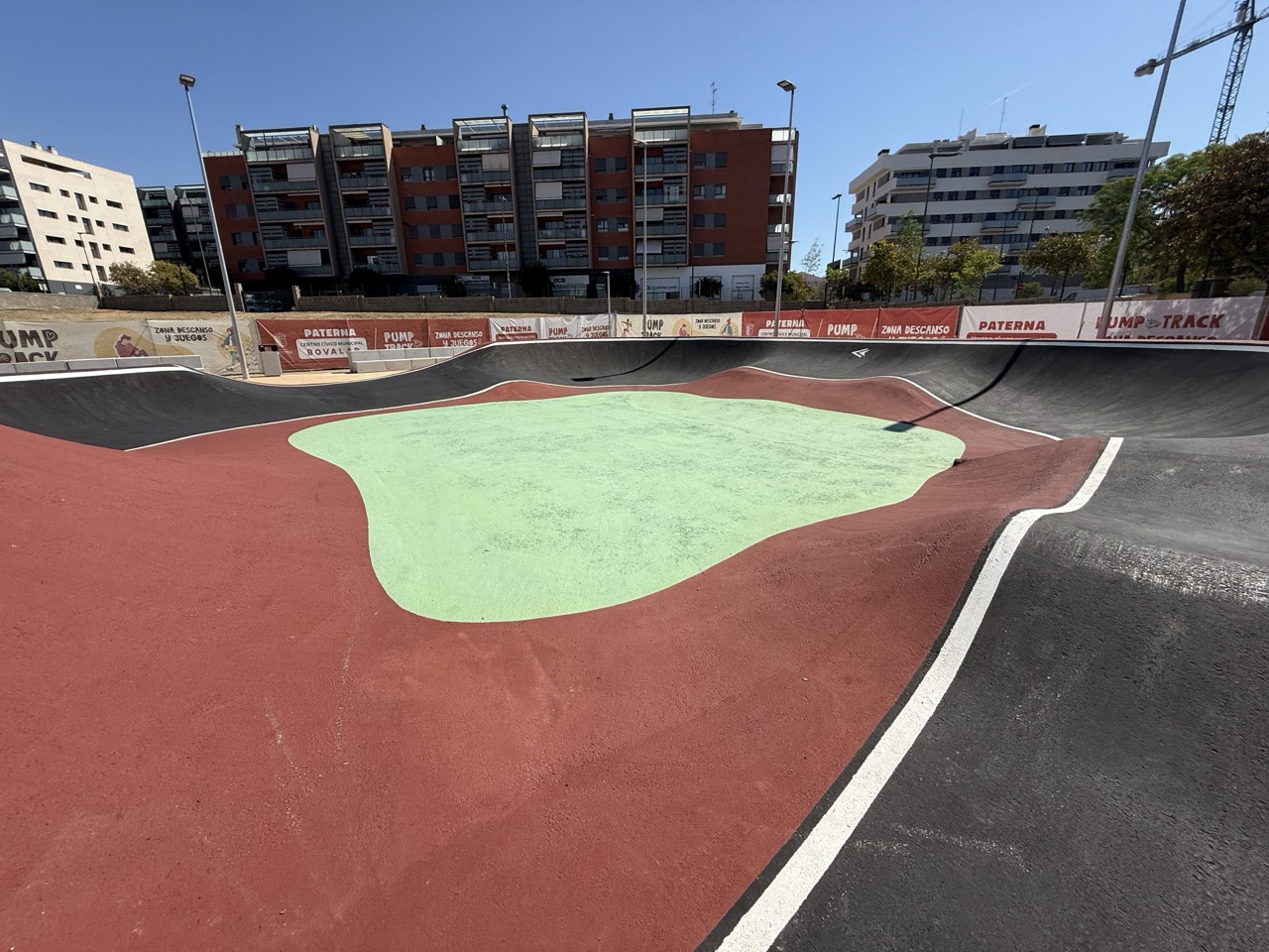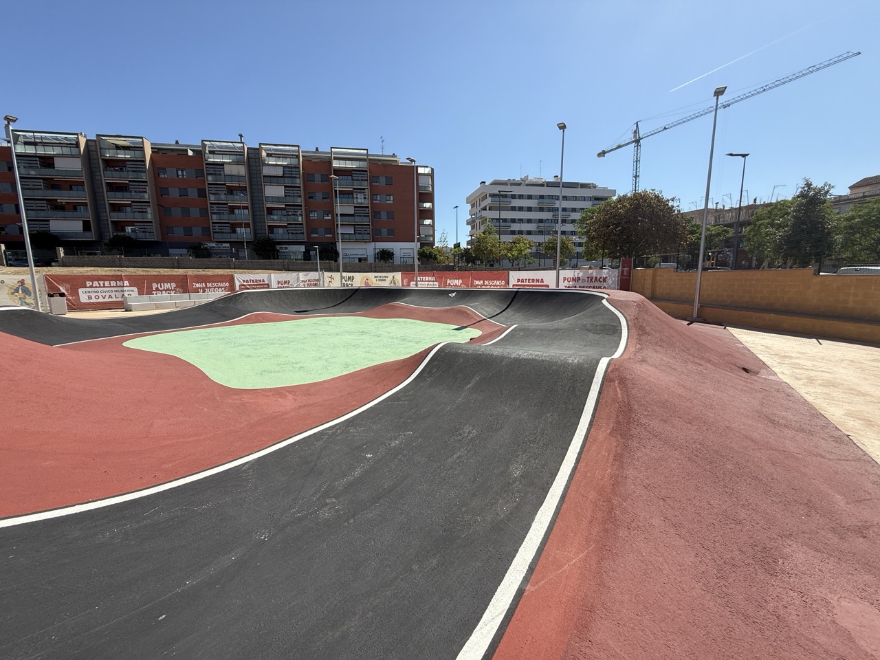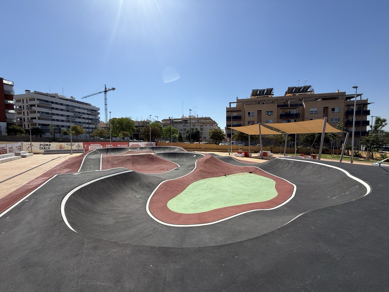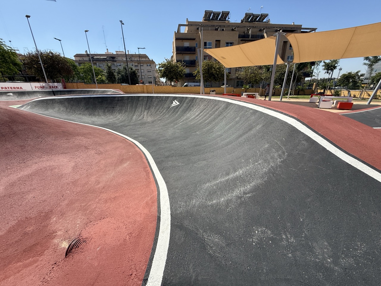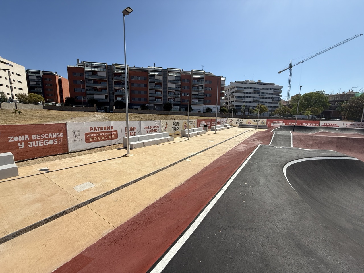 Paterna nos ofrece todos los serivcios necesarios. En la zona podemos encontrar supermercados, cafeterias, restaurantes, etc. Justo al lado tenemos un mercadona, donde podremos ir al baño y comprar alguna cosa que podamos necesitar. Incluso el parking es de acceso libre. Igualmete no suele ser complicado aparcar alrededor del circuito. El recinto del parque, cuenta con unas mesas y una zona con unas lonas para proteger del sol. Tambien tiene un punto de agua.