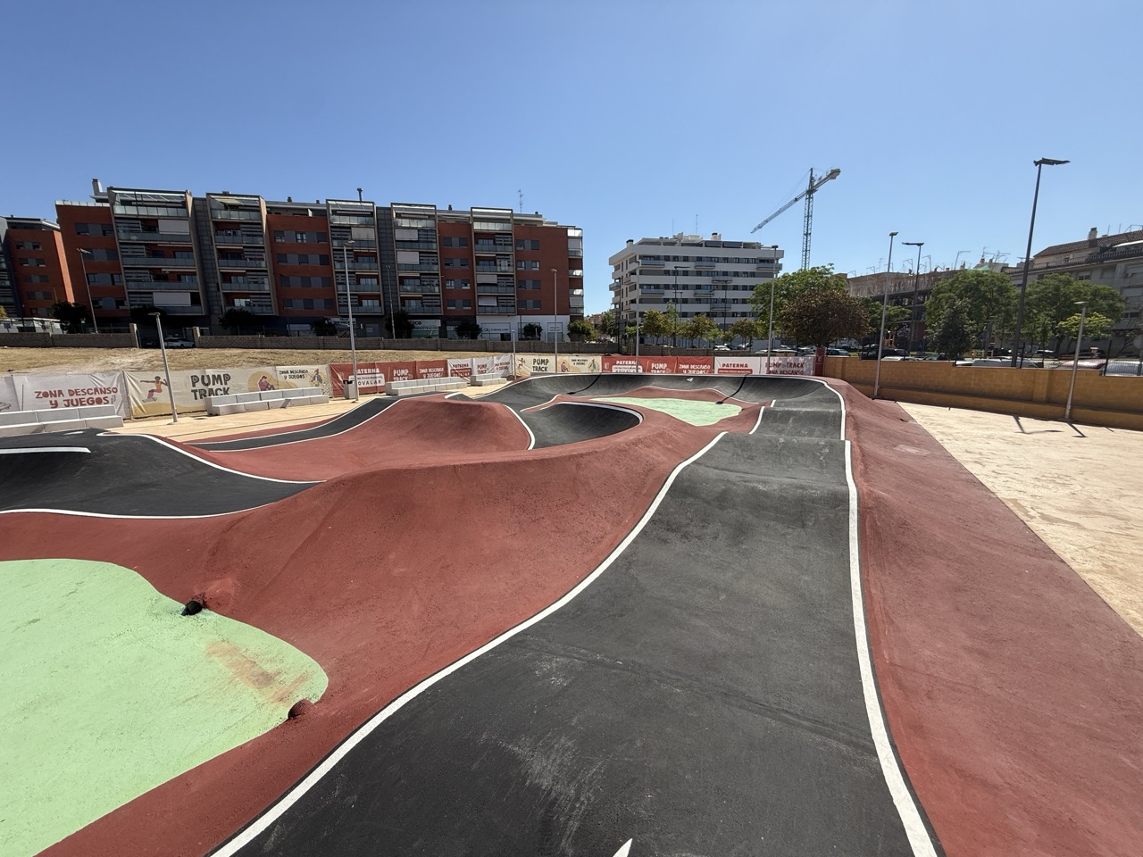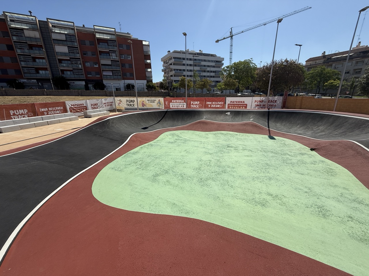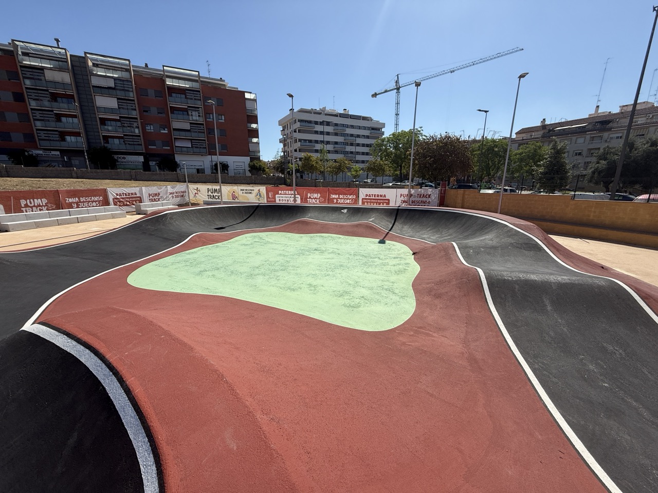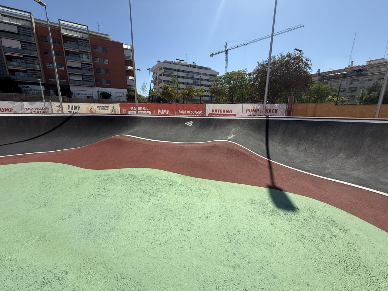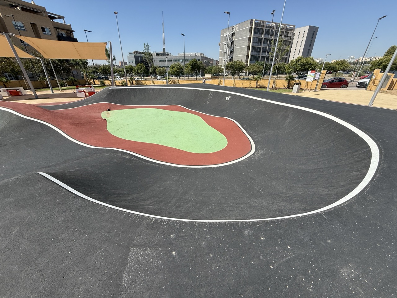 Paterna nos ofrece todos los serivcios necesarios. En la zona podemos encontrar supermercados, cafeterias, restaurantes, etc. Justo al lado tenemos un mercadona, donde podremos ir al baño y comprar alguna cosa que podamos necesitar. Incluso el parking es de acceso libre. Igualmete no suele ser complicado aparcar alrededor del circuito. El recinto del parque, cuenta con unas mesas y una zona con unas lonas para proteger del sol. Tambien tiene un punto de agua.