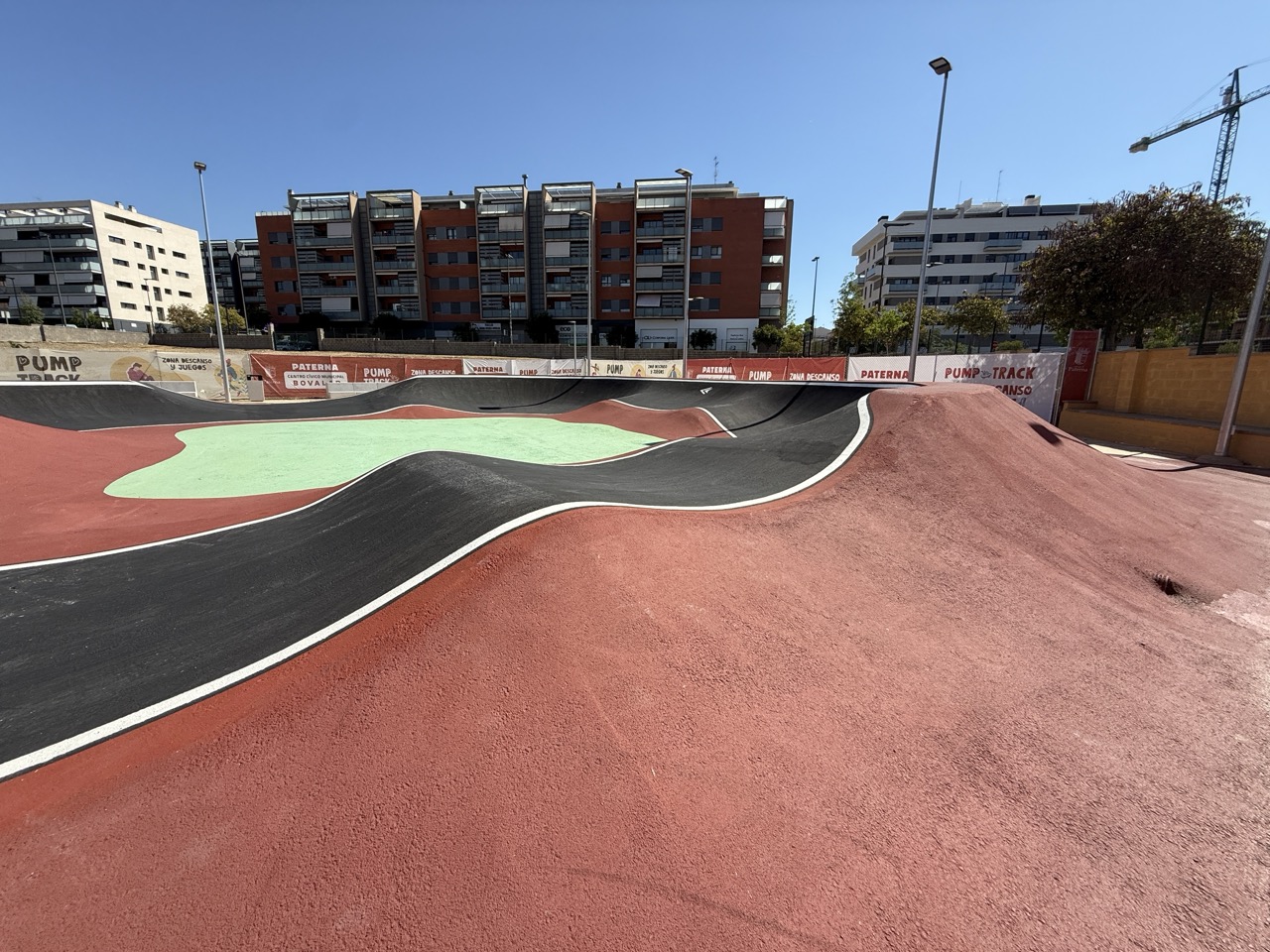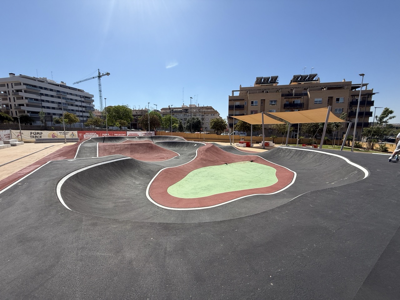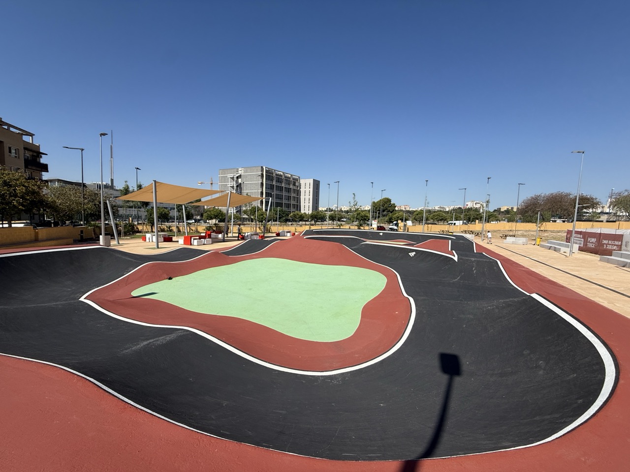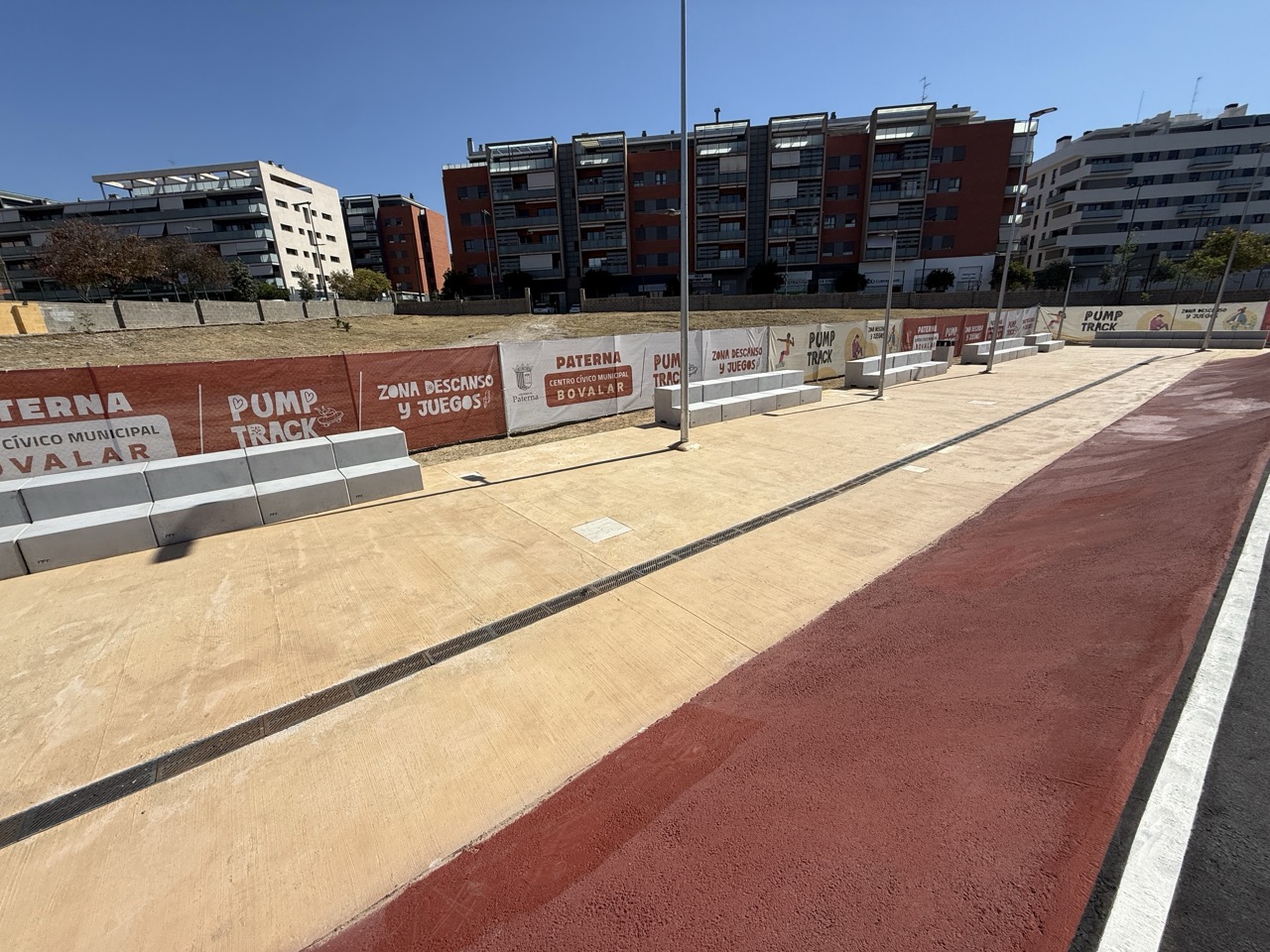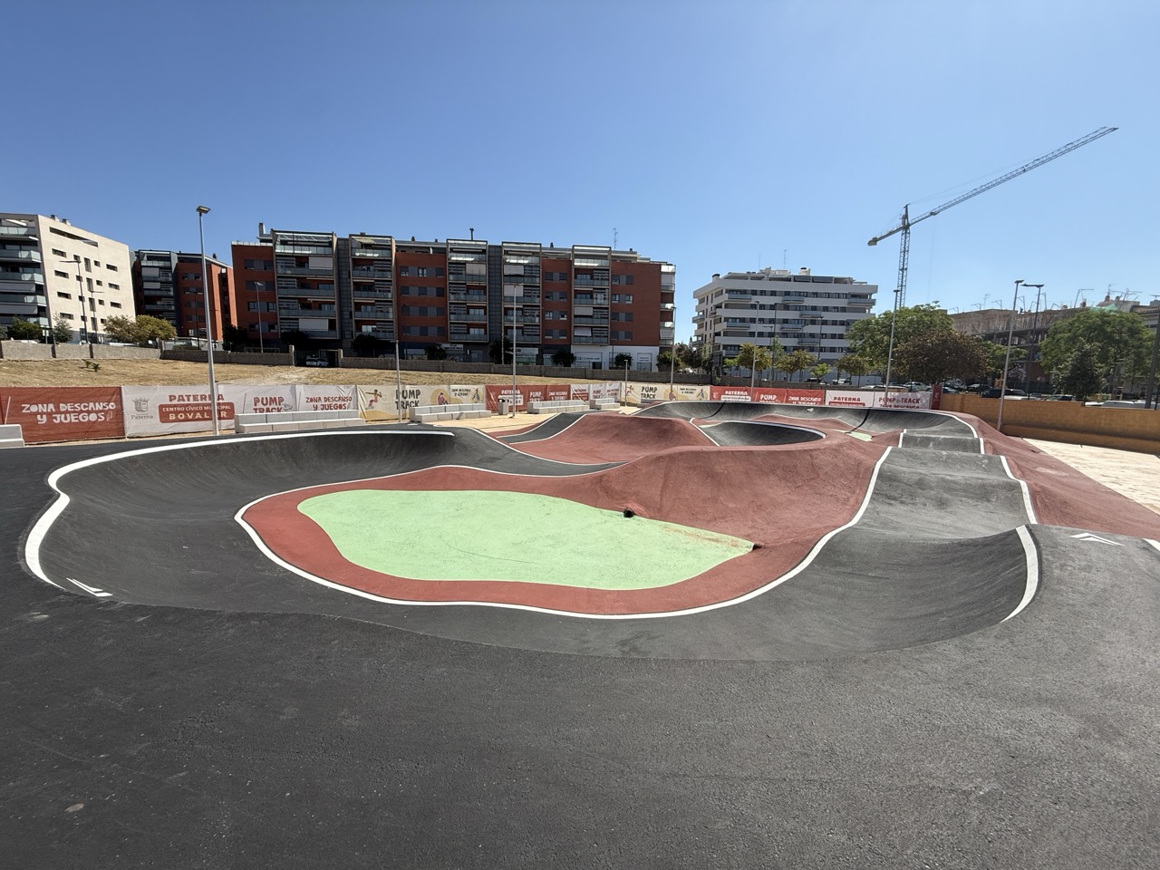 Paterna nos ofrece todos los serivcios necesarios. En la zona podemos encontrar supermercados, cafeterias, restaurantes, etc. Justo al lado tenemos un mercadona, donde podremos ir al baño y comprar alguna cosa que podamos necesitar. Incluso el parking es de acceso libre. Igualmete no suele ser complicado aparcar alrededor del circuito. El recinto del parque, cuenta con unas mesas y una zona con unas lonas para proteger del sol. Tambien tiene un punto de agua.