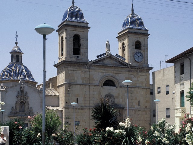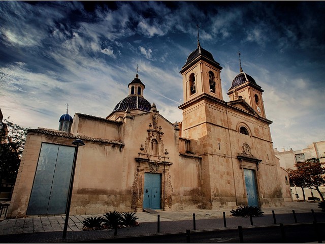 • Iglesia de San Juan Bautista: construida sobre la primera iglesia que a su vez se alzó sobre la mezquita mayor. Destaca la fachada barroca de la capilla del Stmo. Cristo de la Paz y la imponente fachada principal rematada por dos torres con teja azul vidriada. Sufrió graves daños durante la Guerra Civil pero tras ésta recuperó su esplendor pasado. Fue restaurada a mediados de los años 80. En su interior se veneran, entre otras, las imágenes de San Juan Bautista y del Santísimo Cristo de la Paz. También conserva una réplica del arca de la Santa Faz donde el cura del pueblo Mosén Pedro Mena guardó la venerada reliquia sanjuanera.