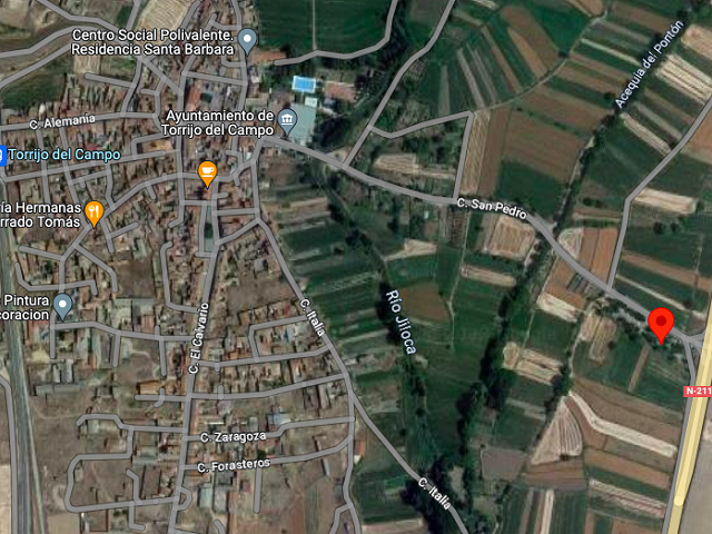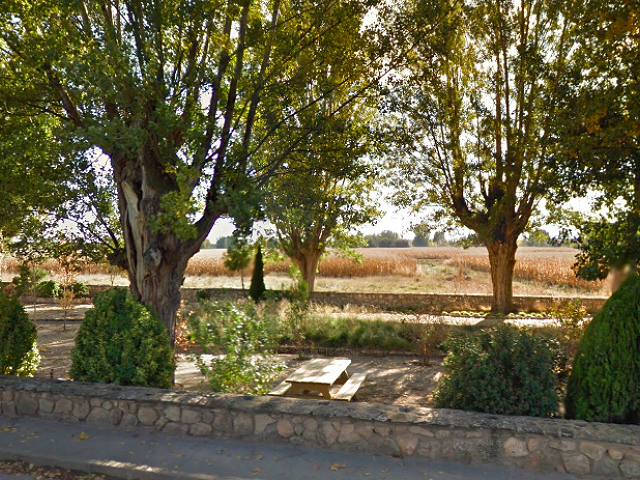 Esta en un parque justo al lado de la carretera, esta algo alejado del pueblo, es una zona con muy buena sombra muy bonita, con unas mesas, ideal para hacer picinic. Tiene un punto de agua. Creo que tiene baños pero creo que estaban cerrados cuando lo visitamos. Si buscamos algun supermercado o gasolinera deberemos acudir al pueblo de al lado, Caminreal. En el pueblo encontraremos una panaderia y un restaurante. Nos ofrecen un servicio de apartamentos turisticos de alquiler. Como patrimonio cultural para visitar, tenemos la Iglesia Parroquial de San Pedro. Es un edificio barroco construido en mampostería Cuenta con tres naves de cuatro tramos que se separan por pilares cruciformes. Se cubre con bóvedas de medio cañón con lunetos. El tercer tramo de la nave central se cubre con cúpula sobre pechinas. La cabecera es plan y prolonga la nave central. Al exterior las tres naves forman un solo cuerpo. La torre se sitúa a los pies y es muy esbelta. Cuenta con cinco cuerpos, el inferior es de mampostería y sillería en las esquinas, con planta cuadrada, mientras que los cuatro superiores son de ladrillo y con planta octogonal. Estos últimos presentan decoración barroca de tradición mudéjar. La portada de dos cuerpos es barroca, con arco de medio punto entre columnas adosadas. Cuenta con frio y hornacina. La Ermita de San Fabián y San Sebastián, situada junto al cementerio de la localidad. Es un edificio de una sola nave con cuatro tramos, al que se añade un pórtico a los pies. Debido a esto presenta una longitud poco común en las ermitas. Tiene cubierta a dos aguas y la Ermita de Santa Bárbara, se construyó en 1723 y se sitúa en el interior del casco urbano. Su planta es cuadrada y se cubre con bóveda de arista. Los nervios de la bóveda están muy marcados, mientras que otros nervios dan forma de cruz a los paños de la bóveda. Se construyó en sillería y mampostería. La portada es un arco de medio punto. Y como turismo y patrimonio natural, Torrijo del Campo se encuentra en el valle o depresión del Jiloca, sus paisajes son de zonas cultivadas, muy llanas entre los que encontramos zonas de regadío y de secano. La presencia del río Jiloca y sus amplias zonas de cultivo hace que sea una importante zona de alimento de la grulla común. La cercanía a la laguna de Gallocanta, permite que estas aves se desplacen en gran número a las distintas zonas del cultivo de la zona del Jiloca. Dentro del patrimonio natural destaca la vega del río Jiloca, zona en la que se pueden encontrar en esta zona aves acuáticas como focha común, cigüeñuela, gaviota reidora, etc. Es también una zona magnífica para avistar de milano real, garzas, ánades reales. El paisaje de la vega es muy vistoso en cualquier época del año. El ciclo vital tanto de los cultivos como de la vegetación natural, permite una variación en la tonalidad cromática. Verdes, ocres, amarillos, etc. irán cambiando a lo largo del año.