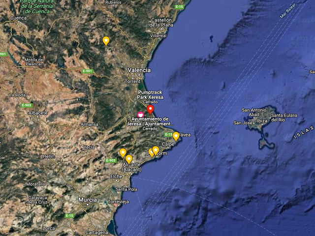 El circuito se encuentra en un recinto vallado, el horario suele ser de 9:00 a 21:00 de la noche, pero está sujeto a cambios por festivos, horario invierno/verano, etc. Como siempre recomiendo cuando son circuitos cerrados y se viene de lejos, una llamada de teléfono para no quedarse tirado. Personalmente me gusta mucho este circuito. Está diseñado para poder hacerse en ambos sentidos. La vuelta tiene unos 110 metros. Tiene muchas posibilidades y combinaciones que sin estar indicadas son muy fáciles de predecir. Creo que dentro de su categoría por tamaño es uno de los circuitos con mejor espacio aprovechado. En tan poco espacio tantas opciones y tanta diversión. Muy bien acabado, todo tiene una armonía, buenos peraltes con un rodar muy fino y suave. Este lo recomendaría para todo tipo de uso... bici, skate, patines, patinete. Una de las mesetas, que rompería la fluidez, para usuarios con skate, tiene una alternativa lateral, más rápida, para no perder velocidad ni fluidez. La parte de la salida se ha aprovechado una antigua salida de bmx por lo que se entra con suficiente velocidad con tan solo dejarse caer. Otra de las ventajas es que es el único circuito de la zona que en verano tiene sombra a partir de las 18:00/19:00 de la tarde. Gracias a la nave que tiene construida a su izquierda, a partir de esa hora cubre el circuito con sombra, por lo que lo hace menos caluroso que el resto en verano.